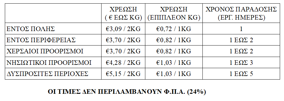 Για όλες τις παραγγελίες άνω των 10 κιλών η αποστολή γίνεται με πρακτορείο μεταφορών που εξυπηρετεί την περιοχή σας.