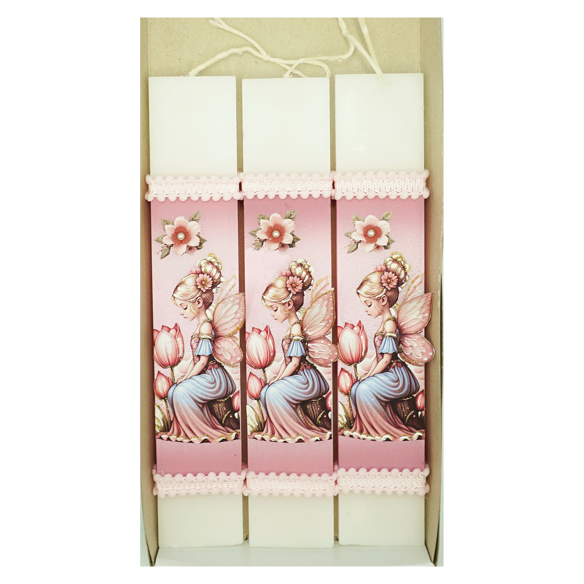 Χειροποίητη Λαμπάδα με Ντεκουπάζ Νεράιδα με Λουλούδι