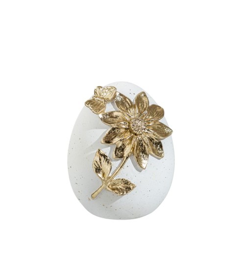 Αβγό Πολυεστερικό Λευκό με Χρυσό Λουλούδι (Μεσαίο)
