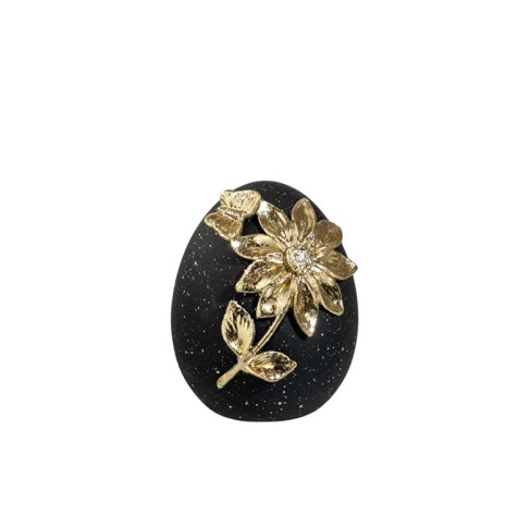 Αβγό Πολυεστερικό Μαύρο με Χρυσό Λουλούδι (Μικρό)