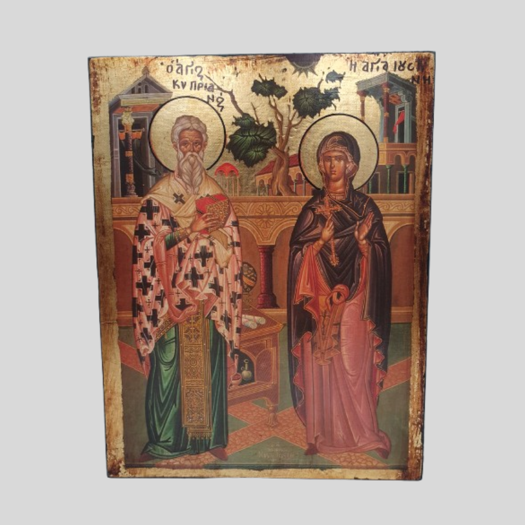 Εικόνα Χειροποίητη “Άγιος Κυπριανός-Αγία Ιουστίνη”