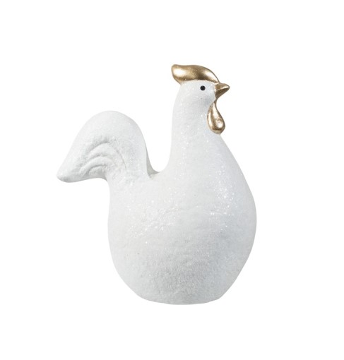 Κεραμικός Κόκορας Λευκός με Χρυσό